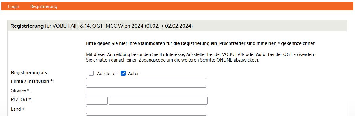 Die Registrierung für Autoren ist bis 25.03.2026 geöffnet. Bitte registrieren Sie sich dazu direkt als Autor hier
